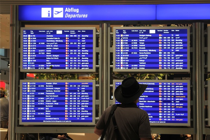 6月12日,在德國法蘭克福機(jī)場,一名男子查看航班信息。新華社記者 單瑋怡 攝