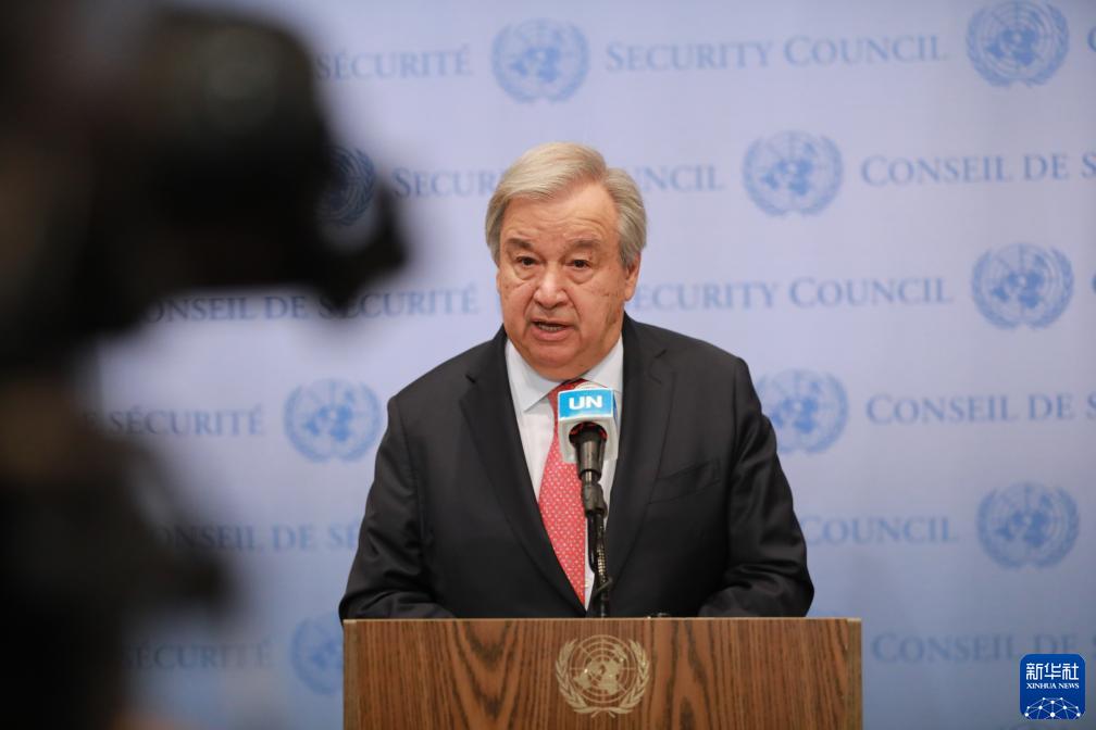 7月17日,在位于美國紐約的聯(lián)合國總部,聯(lián)合國秘書長古特雷斯發(fā)表講話。新華社記者 謝鍔 攝