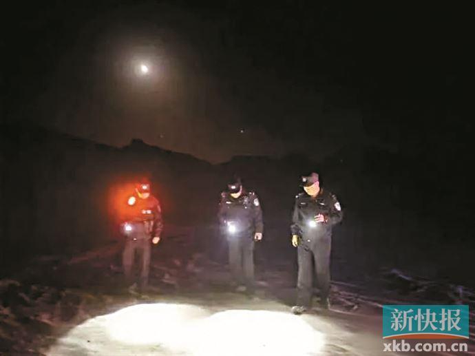 經(jīng)過(guò)5個(gè)小時(shí)找尋,民警在已廢棄的茶冷公路發(fā)現(xiàn)了游客乘坐的商務(wù)車,但周邊無(wú)任何人員蹤跡。通過(guò)無(wú)人機(jī)巡查,民警在5公里外的區(qū)域發(fā)現(xiàn)了失聯(lián)人員。因警車無(wú)法到達(dá)其所處位置,民警艱難地徒步向該位置行進(jìn)。