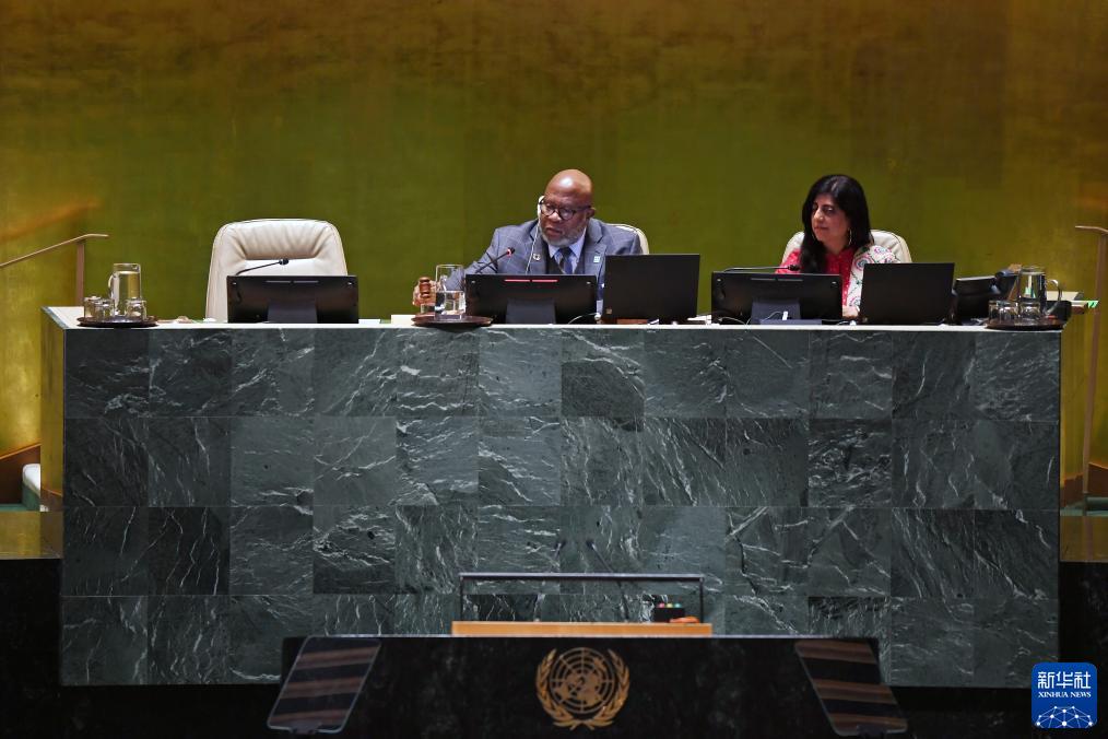 9月26日,在位于紐約的聯(lián)合國總部,第78屆聯(lián)大主席弗朗西斯(左)宣布聯(lián)合國大會一般性辯論閉幕。 新華社記者李睿攝