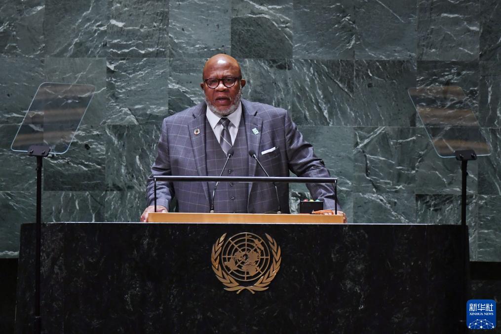 9月26日,在位于紐約的聯(lián)合國總部,第78屆聯(lián)大主席弗朗西斯(中)發(fā)表聯(lián)合國大會一般性辯論閉幕講話。 新華社記者李睿攝