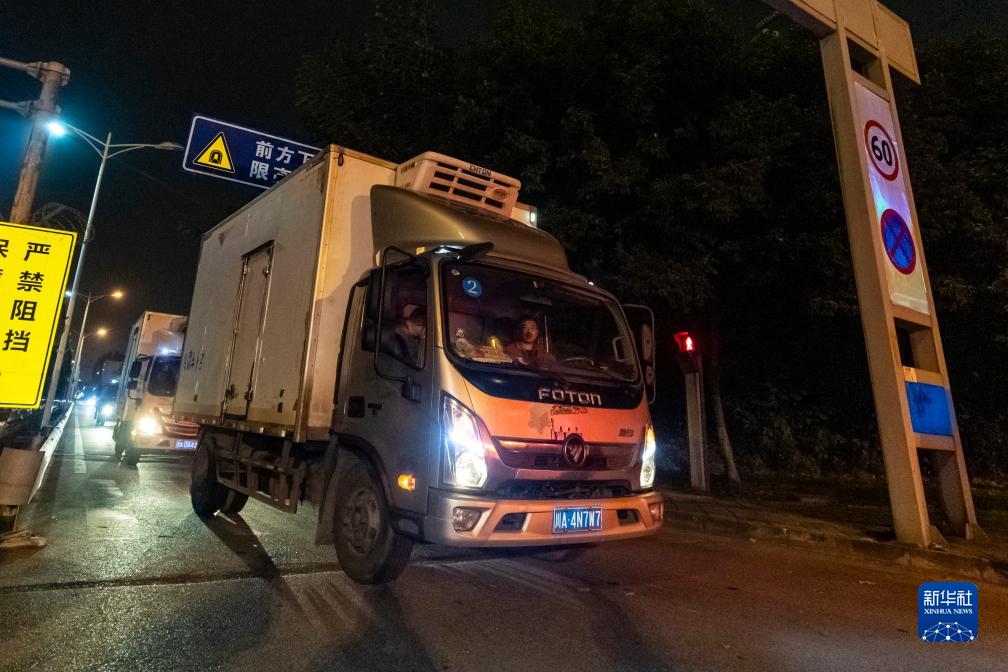 11月10日凌晨,運載旅美大熊貓的車輛駛離成都雙流國際機場。新華社記者 沈伯韓 攝