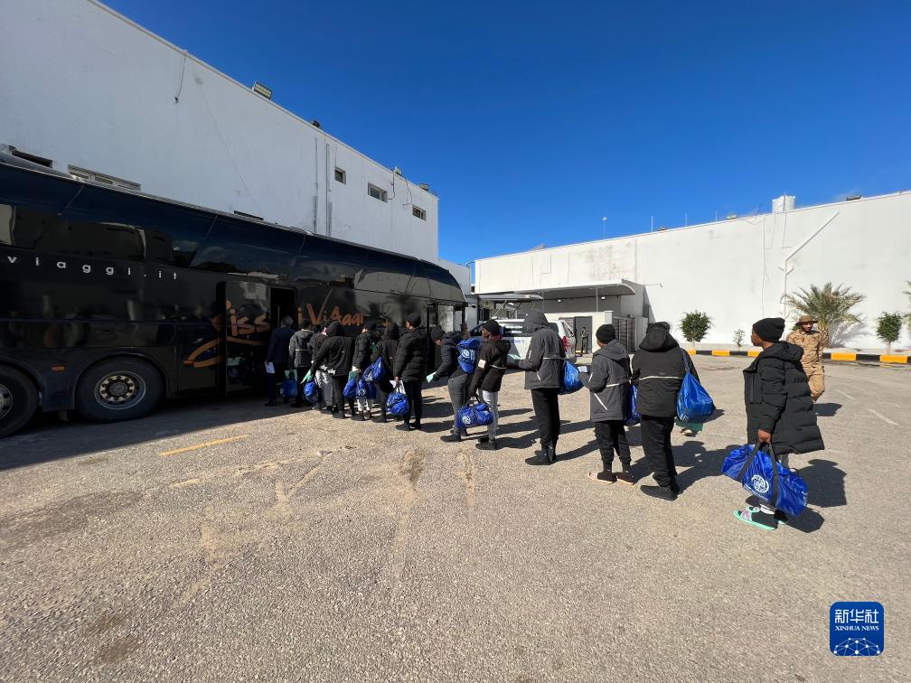 12月4日,非法移民在利比亞的黎波里登上一輛巴士。新華社發(fā)(哈姆扎·圖爾基亞攝)