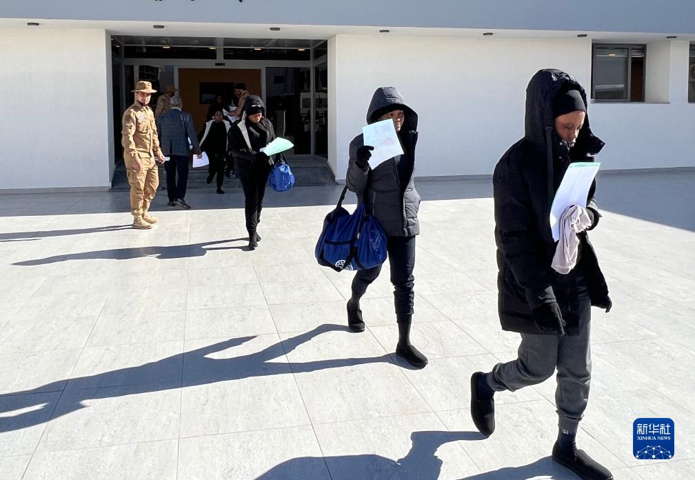 12月4日,在利比亞的黎波里,非法移民離開利比亞非法移民管控部門。新華社發(fā)(哈姆扎·圖爾基亞攝)