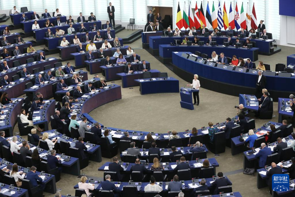 7月18日,在法國(guó)斯特拉斯堡歐洲議會(huì)總部,下一屆歐盟委員會(huì)主席候選人馮德萊恩在投票前陳述發(fā)言。新華社記者 趙丁喆 攝