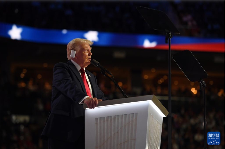 7月18日,美國前總統(tǒng)特朗普在密爾沃基的共和黨全國代表大會上發(fā)表演講。新華社記者 李睿 攝