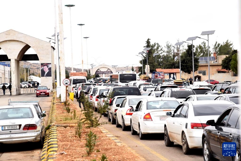 11月28日,在敘利亞中部佳迪達(dá)·亞布斯口岸,車(chē)輛等待通關(guān)。新華社發(fā)(蒙塞夫·梅馬里攝)