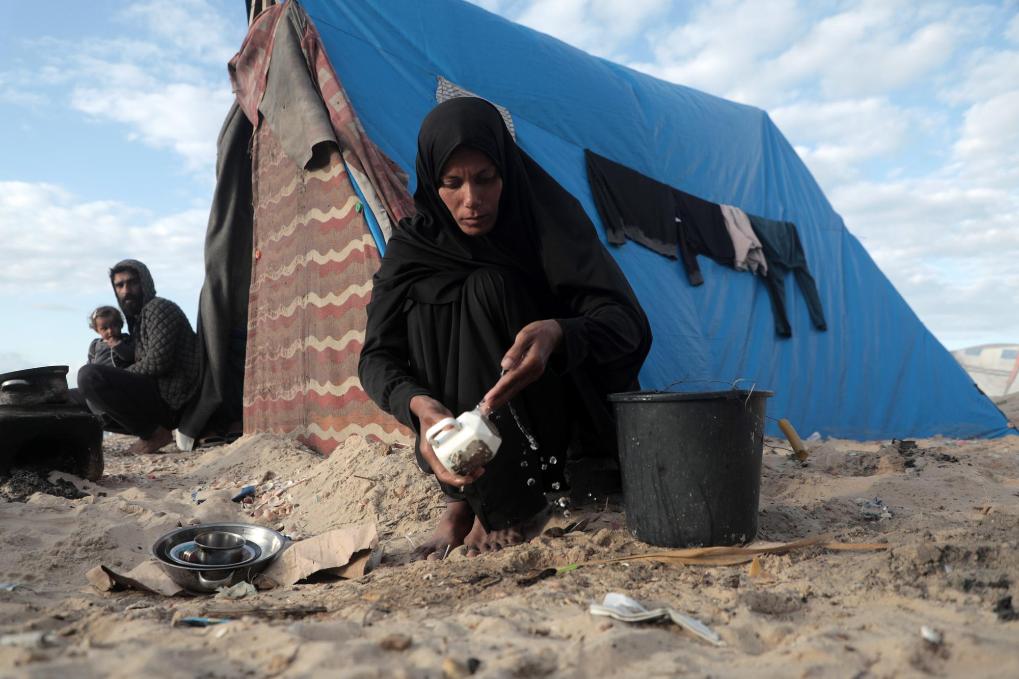 11月28日,在加沙地帶中部城市代爾拜拉赫的海邊,一名婦女在清洗餐具。新華社發(fā)(里澤克·阿卜杜勒賈瓦德攝)
