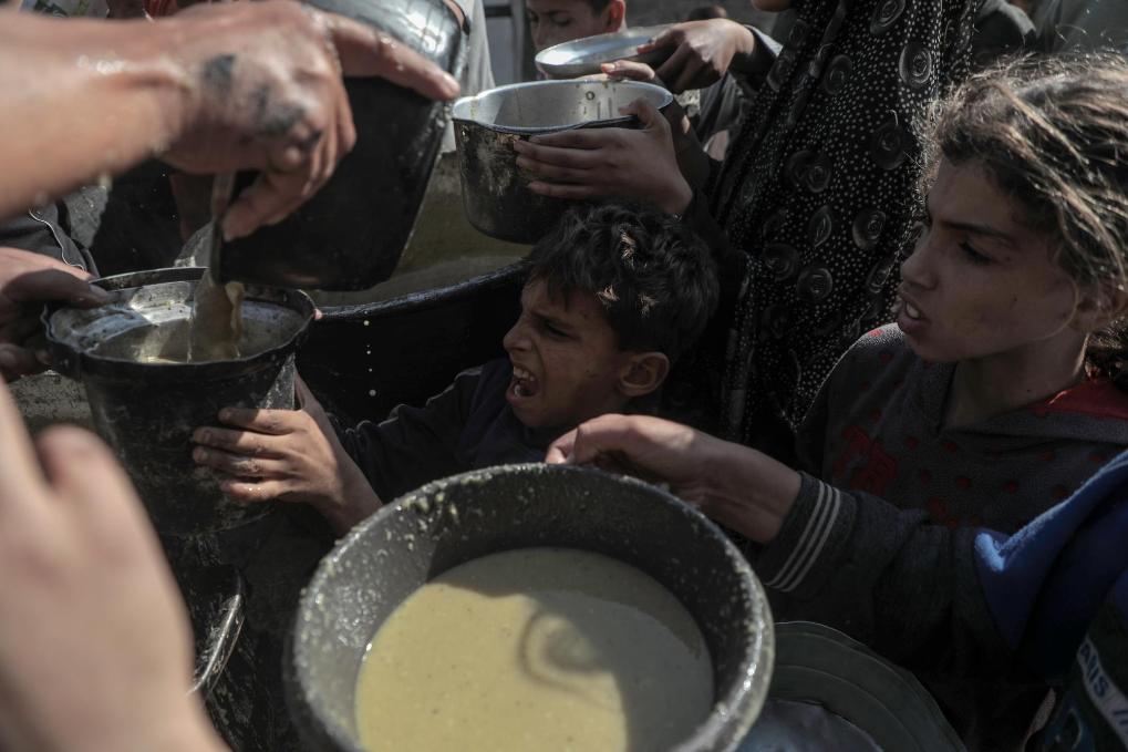 11月23日,巴勒斯坦人在加沙地帶中部代爾拜拉赫領(lǐng)取救濟食物。新華社發(fā)(里澤克·阿卜杜勒賈瓦德攝)