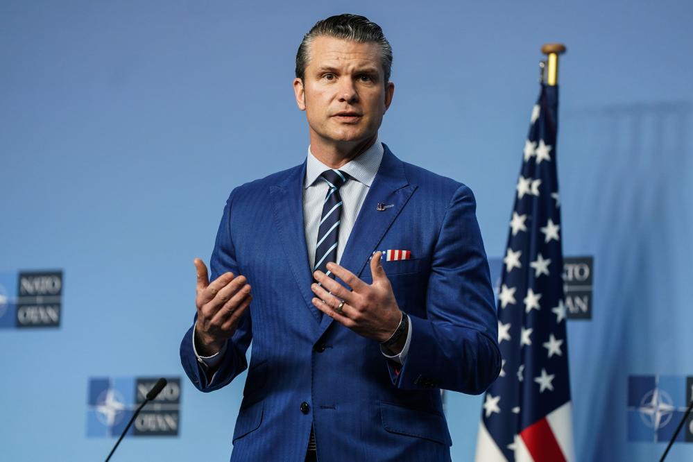 2月13日,在比利時(shí)布魯塞爾,美國(guó)國(guó)防部長(zhǎng)赫格塞思在發(fā)布會(huì)上講話。新華社記者彭子洋攝