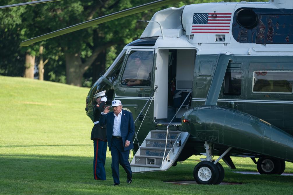 7月6日,美國(guó)總統(tǒng)特朗普乘直升機(jī)返回華盛頓白宮。新華社記者胡友松攝