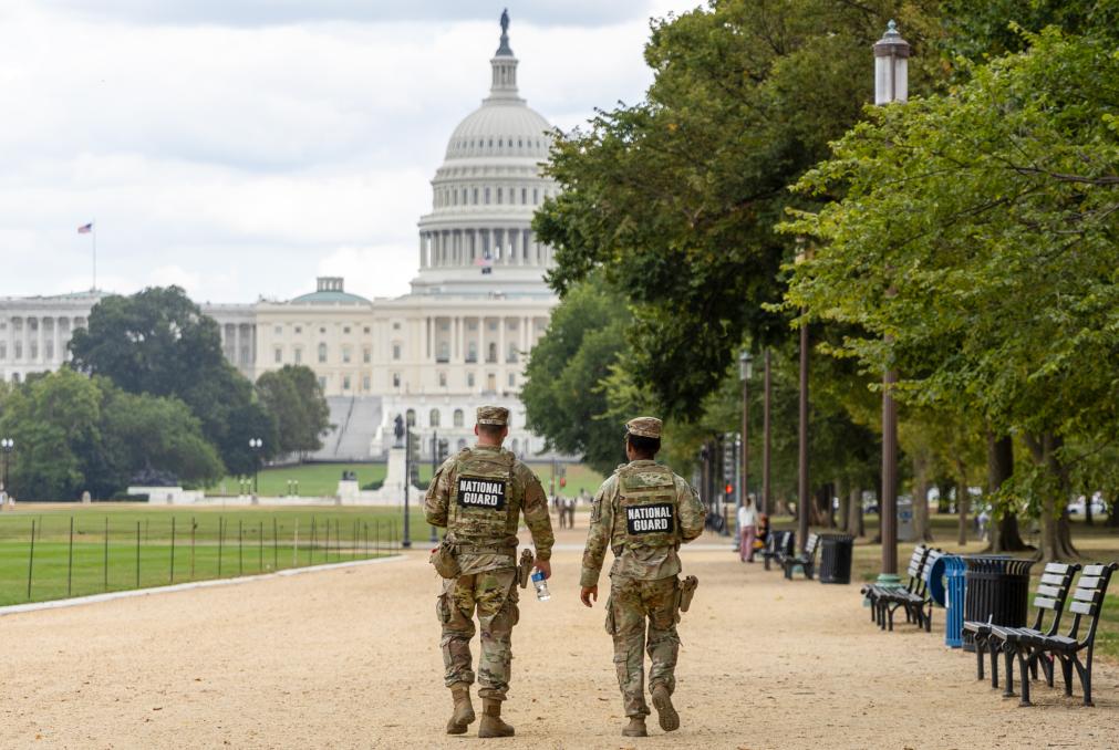 9月4日,國民警衛(wèi)隊(duì)成員在美國首都華盛頓巡邏。新華社記者胡友松攝
