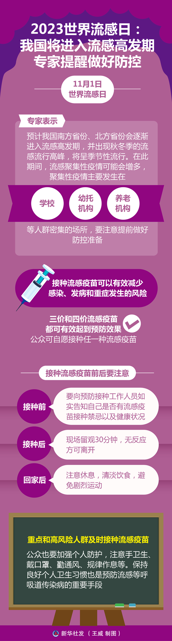 11月1日是世界流感日。進(jìn)入11月,秋冬季氣溫變化幅度較大,也是流感等各類呼吸道傳染病的高發(fā)期。當(dāng)前我國流感整體流行情況如何?為何要及時接種流感疫苗,接種前后要注意什么?國家疾控局邀請專家接受媒體采訪,解答公眾關(guān)心的流感防控相關(guān)熱點(diǎn)問題。