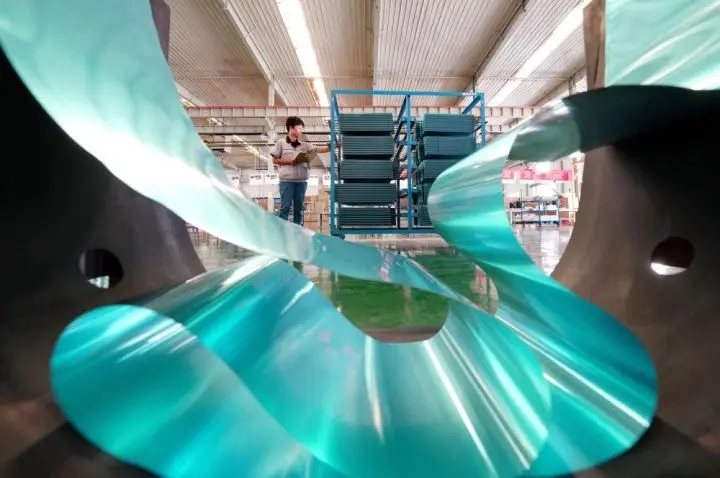 工人在河北省晉州市一家制冷設(shè)備企業(yè)的生產(chǎn)車間工作(2023年9月19日攝)。新華社記者楊世堯攝