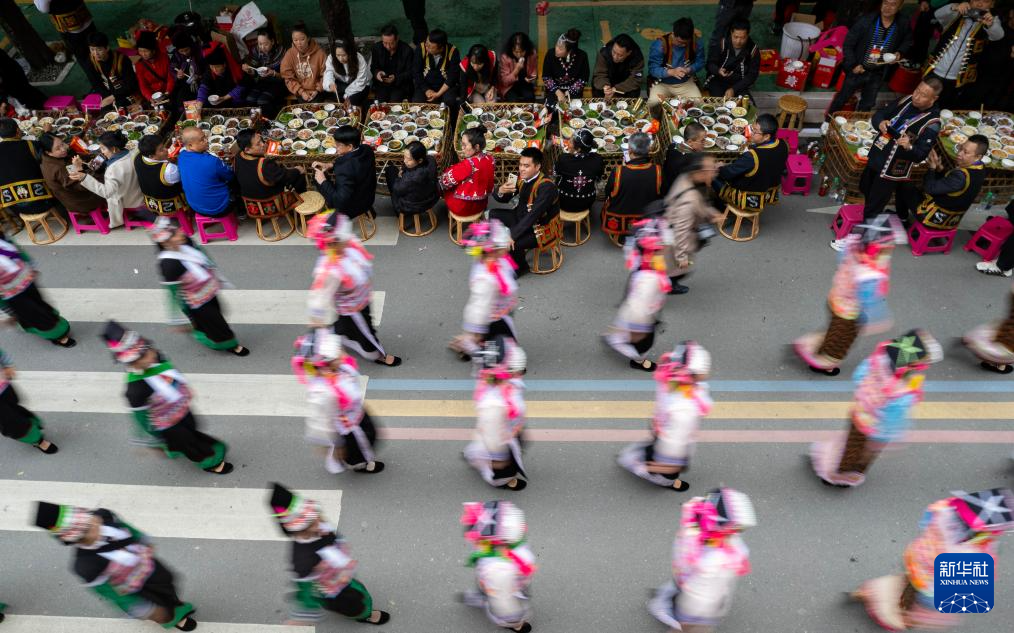 當(dāng)日,云南省紅河哈尼族彝族自治州綠春縣舉行哈尼族長(zhǎng)街宴活動(dòng)。當(dāng)?shù)毓嶙迦罕娚碇?jié)日盛裝,載歌載舞,與游客共慶2023云南·綠春哈尼十月年長(zhǎng)街古宴文化旅游節(jié)。長(zhǎng)街古宴是哈尼族“十月年”中的一個(gè)習(xí)俗,當(dāng)?shù)厝罕娡ㄟ^(guò)長(zhǎng)街古宴慶祝豐收、祈福納祥。
