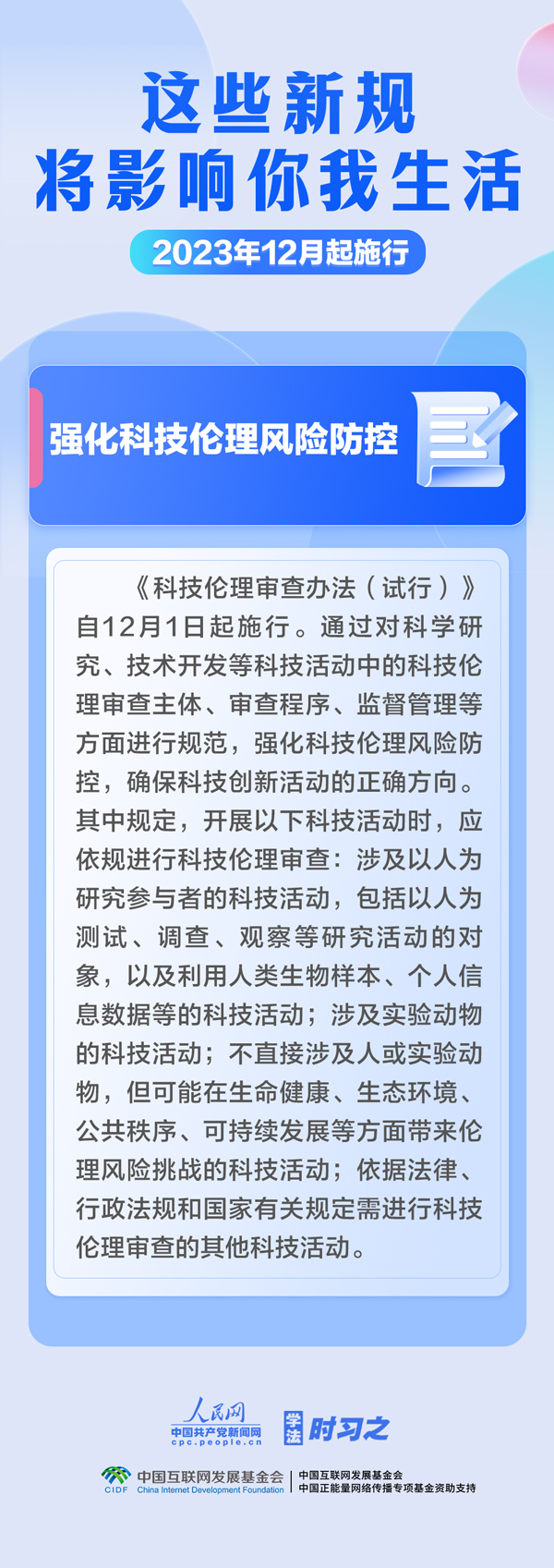 明確社保經(jīng)辦便民利民要求;強化科技倫理風險防控;進一步規(guī)范食用農(nóng)產(chǎn)品市場銷售行為……12月,這些新規(guī)施行,將影響你我生活。