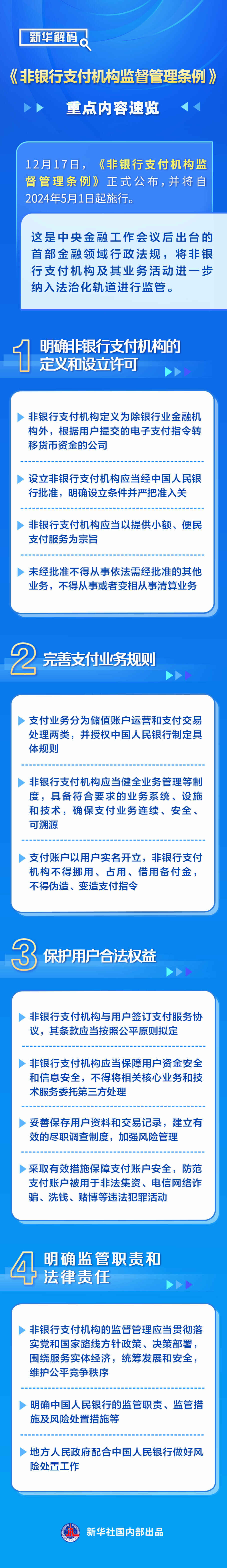 新華社北京12月17日電 題:這部法規(guī)事關非銀行支付,一起來看關鍵內(nèi)容