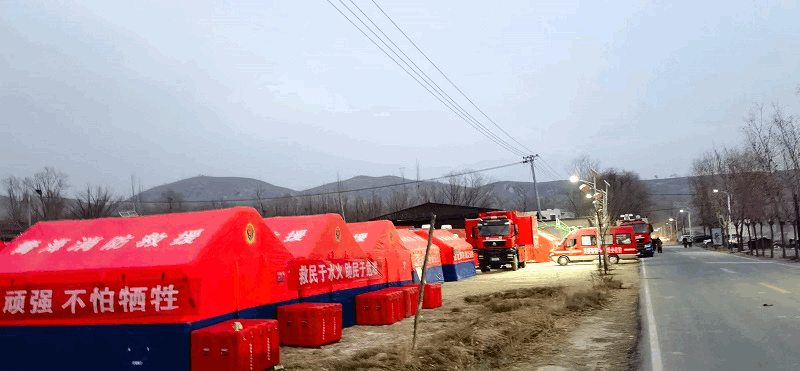 12月19日白天,青海省海東市民和回族土族自治縣正經(jīng)歷嚴(yán)寒。一輛輛消防車從國道拐進(jìn)中川鄉(xiāng)的村路,載著挖掘機(jī)的重卡也駛了進(jìn)來。再往里走,金田村旁的空地上,現(xiàn)在成了臨時(shí)安置點(diǎn),一排排藍(lán)色帳篷分外顯眼,村民們圍著圈蹲在一起,眼神不約而同地往北向瞟去,焦急等待著親友的消息。