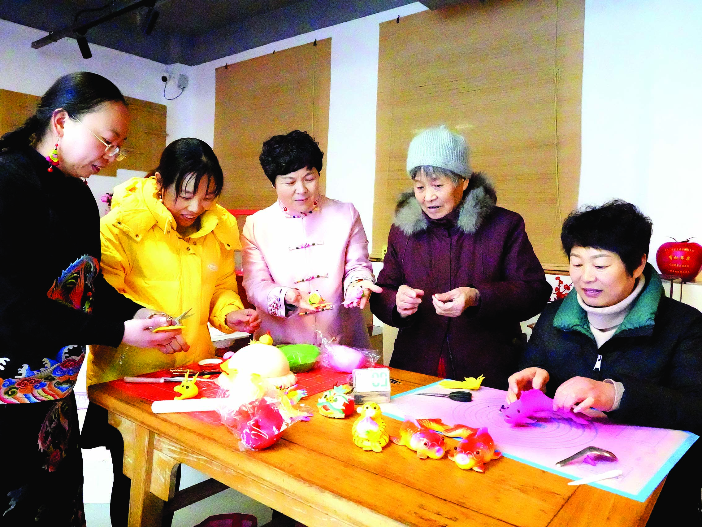 山東手造煙臺綜合展示體驗中心棲霞館,手工藝人在制作手工用品。