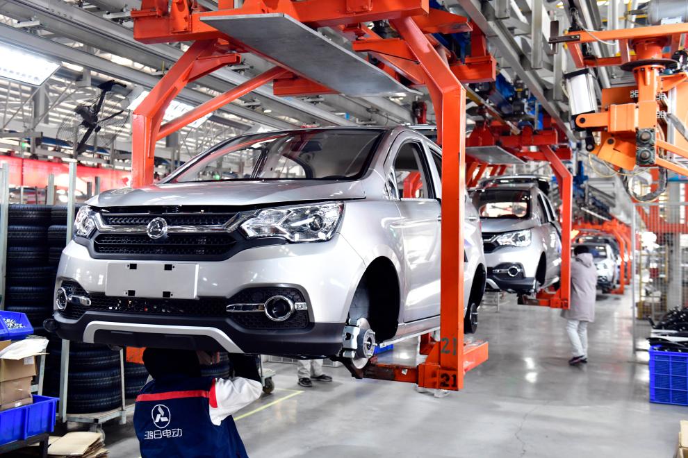 ??2024年1月12日,在日照鴻日新能源汽車有限公司,工作人員在整車生產(chǎn)線上忙碌。新華社記者 郭緒雷 攝