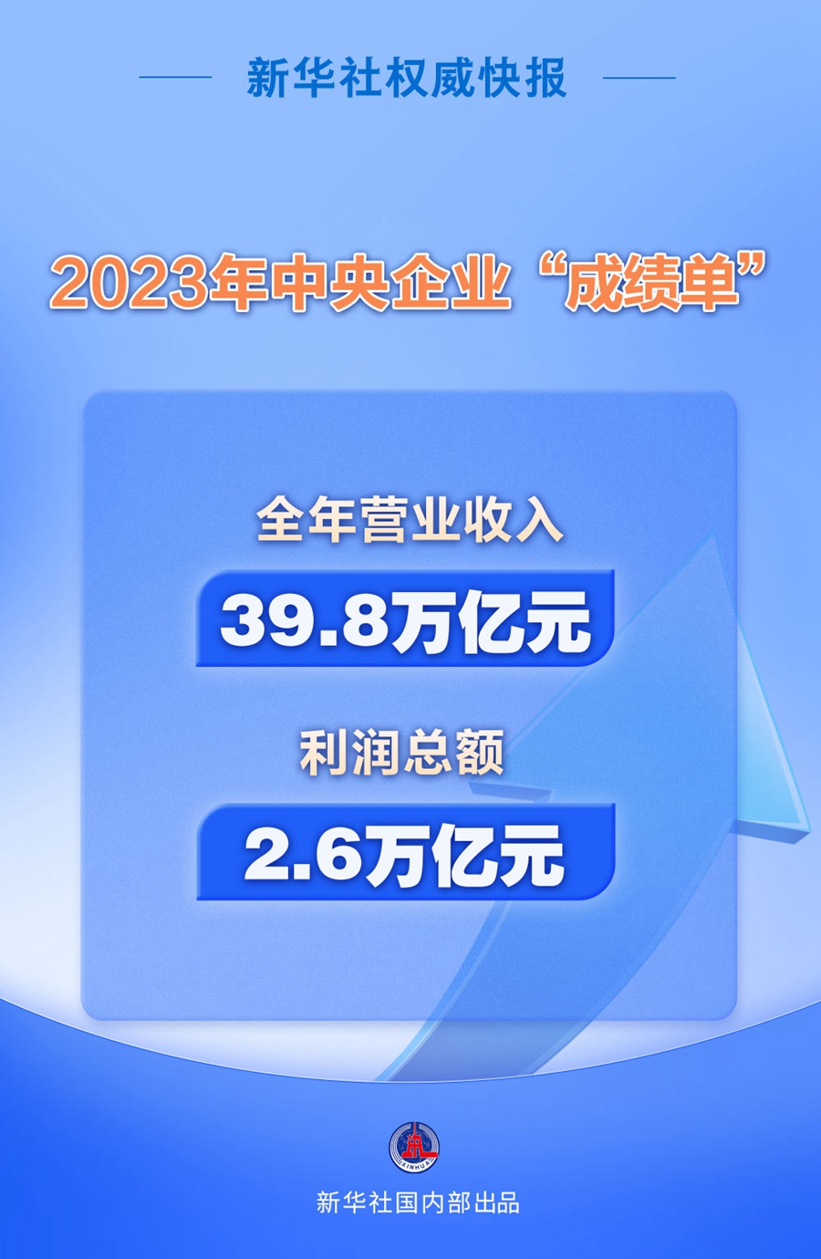 國務(wù)院國資委1月24日發(fā)布年度中央企業(yè)運(yùn)行“成績單”:2023年,中央企業(yè)實(shí)現(xiàn)營業(yè)收入39.8萬億元、利潤總額2.6萬億元、歸母凈利潤1.1萬億元,實(shí)現(xiàn)高質(zhì)量的穩(wěn)步增長;累計(jì)完成固定資產(chǎn)投資(含房地產(chǎn))5.09萬億元、同比增長11.4%,戰(zhàn)略性新興產(chǎn)業(yè)完成投資2.18萬億元、同比增長32.1%;中央企業(yè)研發(fā)經(jīng)費(fèi)投入1.1萬億元,連續(xù)兩年突破萬億元大關(guān)。