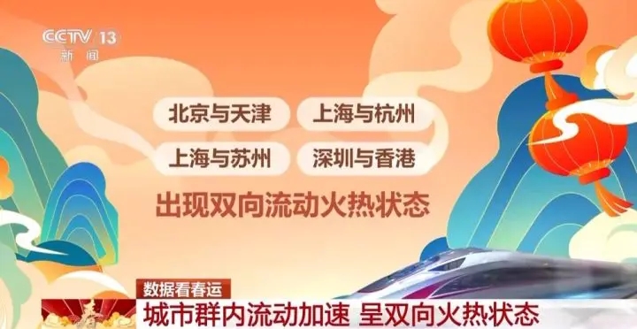 數(shù)據(jù)顯示,城市群內(nèi)的流動(dòng)也在明顯加速,尤其是北京到天津、上海到杭州、上海到蘇州、深圳到香港這些熱門路線,出現(xiàn)了雙向流動(dòng)火熱的狀態(tài)。