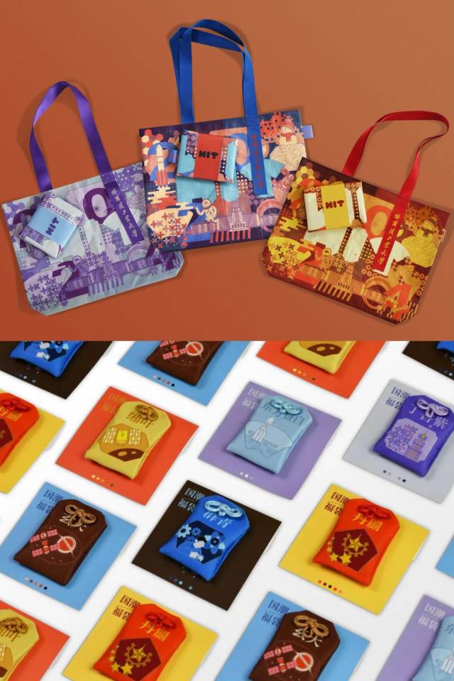 還有以傳統(tǒng)色和學(xué)校元素設(shè)計(jì)的福袋、禮袋