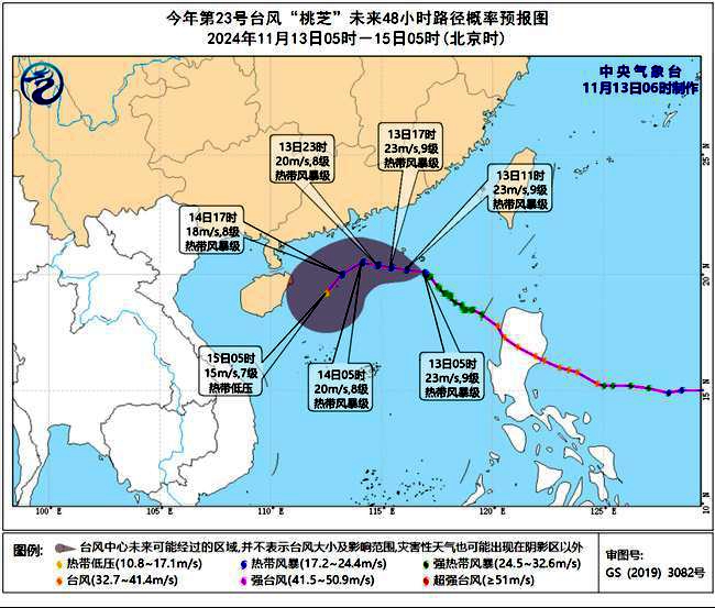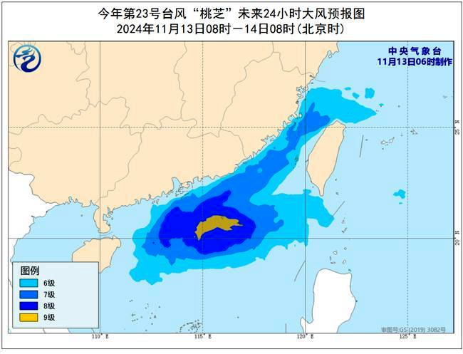 中央氣象臺11月13日06時繼續(xù)發(fā)布臺風藍色預(yù)警:
