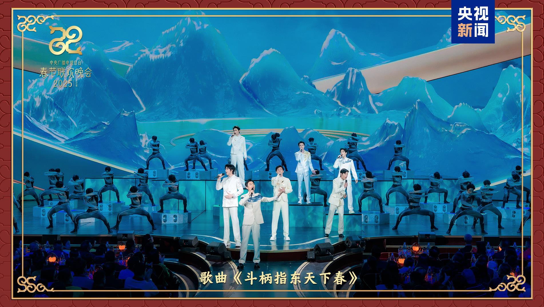 武術(shù)《筆走龍蛇》中,甄子丹與眾武者以舞臺(tái)為硯,一招一式剛?cè)岵?jì)、揮灑自如,以太極武術(shù)的力與美,將李白《草書歌行》中的“筆走龍蛇”具象化,展現(xiàn)中國書法墨染千里、寫意山河的神與魂。歌曲《斗柄指東天下春》再現(xiàn)中國古代天文歷法智慧,朱亞文、白宇、劉宇寧、蔣奇明、許凱、丁禹兮、王安宇化作北斗七星,在虛實(shí)結(jié)合的影像空間里上演四季變換與星象流轉(zhuǎn),帶觀眾走向充滿生機(jī)與希望的乙巳蛇年。整場(chǎng)晚會(huì)中,百余種非遺巧妙出現(xiàn),與大家共度熱熱鬧鬧的“非遺版”春節(jié)。