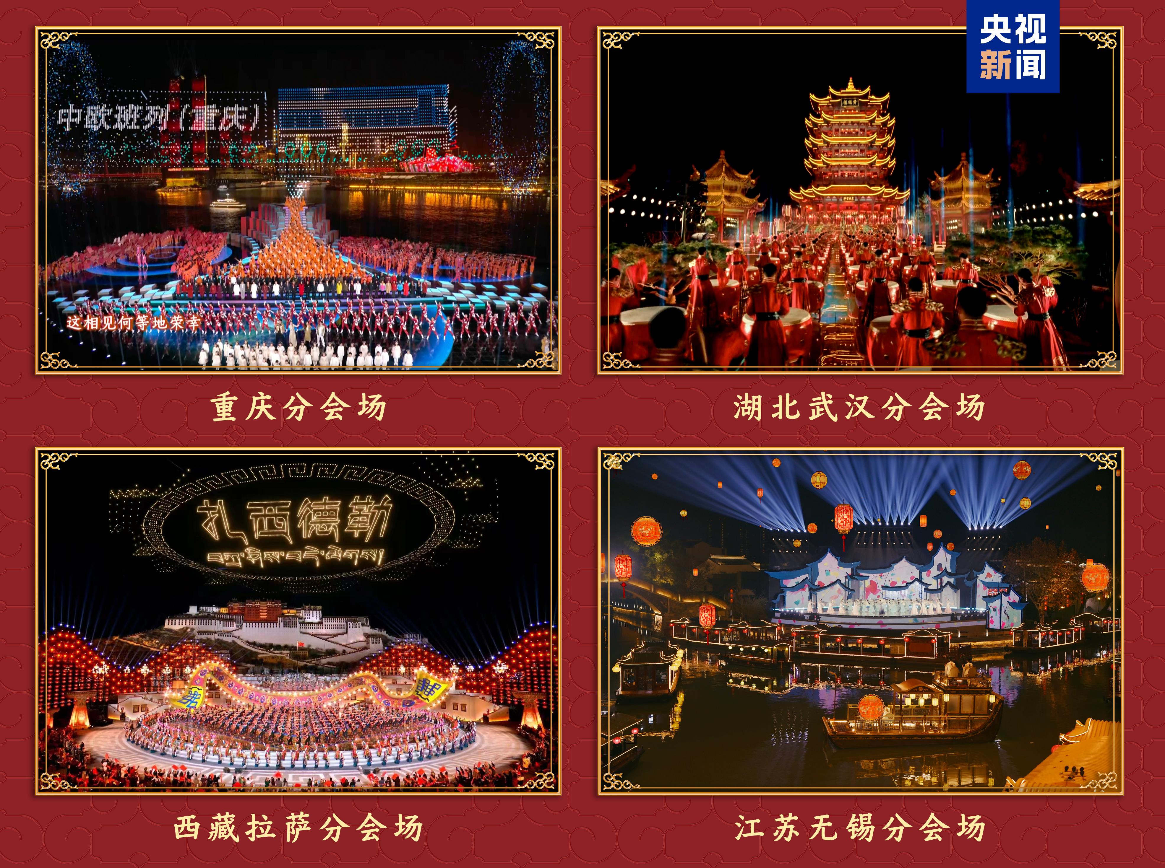 重慶、湖北武漢、西藏拉薩、江蘇無錫四地分會(huì)場(chǎng)遙相呼應(yīng),一幅幅獨(dú)具城市魅力的畫卷,勾勒出祖國山河的壯麗圖景。重慶分會(huì)場(chǎng)以“慶·新春”為主題,千廝門大橋的“新春新潮夜”情景音樂秀、780輛新能源汽車智控?zé)絷嚭?000架無人機(jī)編組的光影聯(lián)動(dòng),展現(xiàn)山城8D立體的無限魅力。湖北武漢分會(huì)場(chǎng)《星漢耀江城》煙火氣濃郁、人情味滿滿,新派戲曲將京、楚、漢三劇種融匯編創(chuàng),雜技與傳統(tǒng)楚樂創(chuàng)意呈現(xiàn),鳳凰圖騰振翅欲飛,“英雄城市”深厚的文化底蘊(yùn)和大江大湖的豪爽之氣一覽無遺。西藏拉薩分會(huì)場(chǎng)千人鼓潮融匯熱巴舞、卓舞等西藏傳統(tǒng)舞蹈,才旦卓瑪領(lǐng)銜唱出中華民族一家親的團(tuán)圓景象;現(xiàn)場(chǎng)還為定日縣送去誠摯祝福,表達(dá)出人民至上、風(fēng)雨同舟、重建美麗新家園的堅(jiān)定信心;那曲薩普雪山、昌都來古冰川等自然風(fēng)光遼闊壯美,令人神往。江蘇無錫分會(huì)場(chǎng)在江南水鄉(xiāng)上演一場(chǎng)穿越古今的《無錫景·家國情》,曲水穿城而過,評(píng)彈曲調(diào)婉轉(zhuǎn)流長(zhǎng),文人墨客揮毫潑墨,千年運(yùn)河之上千帆競(jìng)發(fā),在源遠(yuǎn)流長(zhǎng)的文化與磅礴的工業(yè)力量中展現(xiàn)“太湖明珠”的豐沛迷人。