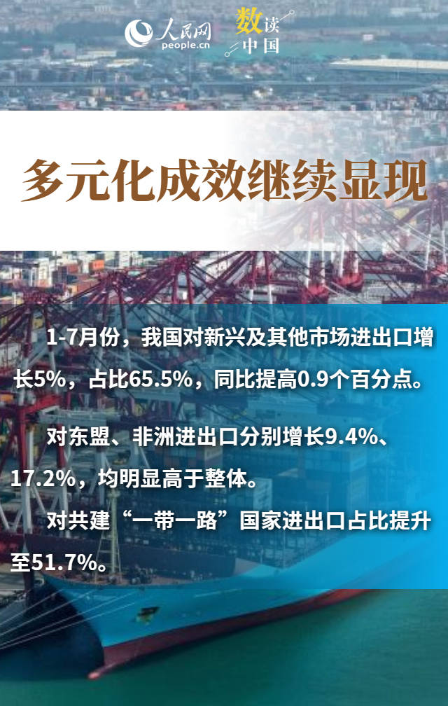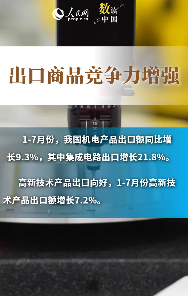 進(jìn)出口規(guī)模創(chuàng)歷史新高、“朋友圈”不斷擴(kuò)大、民營(yíng)企業(yè)持續(xù)創(chuàng)新……數(shù)據(jù)顯示,今年前7個(gè)月,我國(guó)貨物貿(mào)易進(jìn)出口總值25.7萬(wàn)億元,同比增長(zhǎng)3.5%。在外部挑戰(zhàn)之下,我國(guó)貨物進(jìn)出口持續(xù)增長(zhǎng),展現(xiàn)出較強(qiáng)韌性和活力,為世界經(jīng)濟(jì)復(fù)蘇注入了中國(guó)力量。