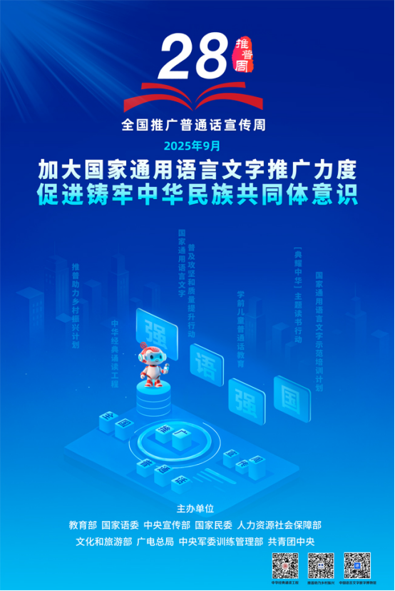 推普周期間,教育部、國家語委牽頭組織舉辦全國推普周重點(diǎn)活動;開展“典耀中華”主題讀書行動,舉辦中華經(jīng)典誦寫講大賽、全國校園節(jié)慶日誦讀等品牌活動;組織開展首批全國示范性特色學(xué)校(語言文字推廣應(yīng)用類)創(chuàng)建;開展“書信共鑄 石榴花開”信件征集、“推普助力鄉(xiāng)村振興”大學(xué)生社會實(shí)踐志愿服務(wù)及推普融媒體專題宣傳活動。