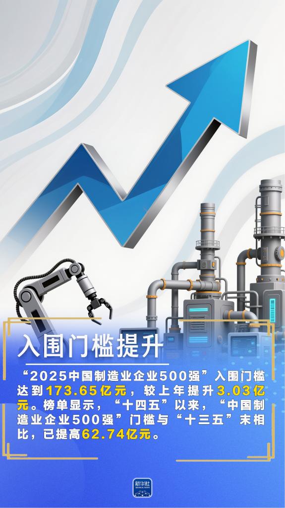 9月20日,在安徽合肥舉辦的2025世界制造業(yè)大會上,中國企業(yè)聯(lián)合會、中國企業(yè)家協(xié)會發(fā)布“2025中國制造業(yè)企業(yè)500強(qiáng)”榜單,一連串?dāng)?shù)字記錄下“中國制造”的成長軌跡。跟隨這組海報(bào),一起了解吧。