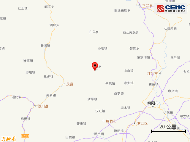 據(jù)中國(guó)地震臺(tái)網(wǎng)正式測(cè)定,10月12日7時(shí)23分在四川阿壩州茂縣發(fā)生3.1級(jí)地震,震源深度15公里,震中位于北緯31.80度,東經(jīng)104.14度。