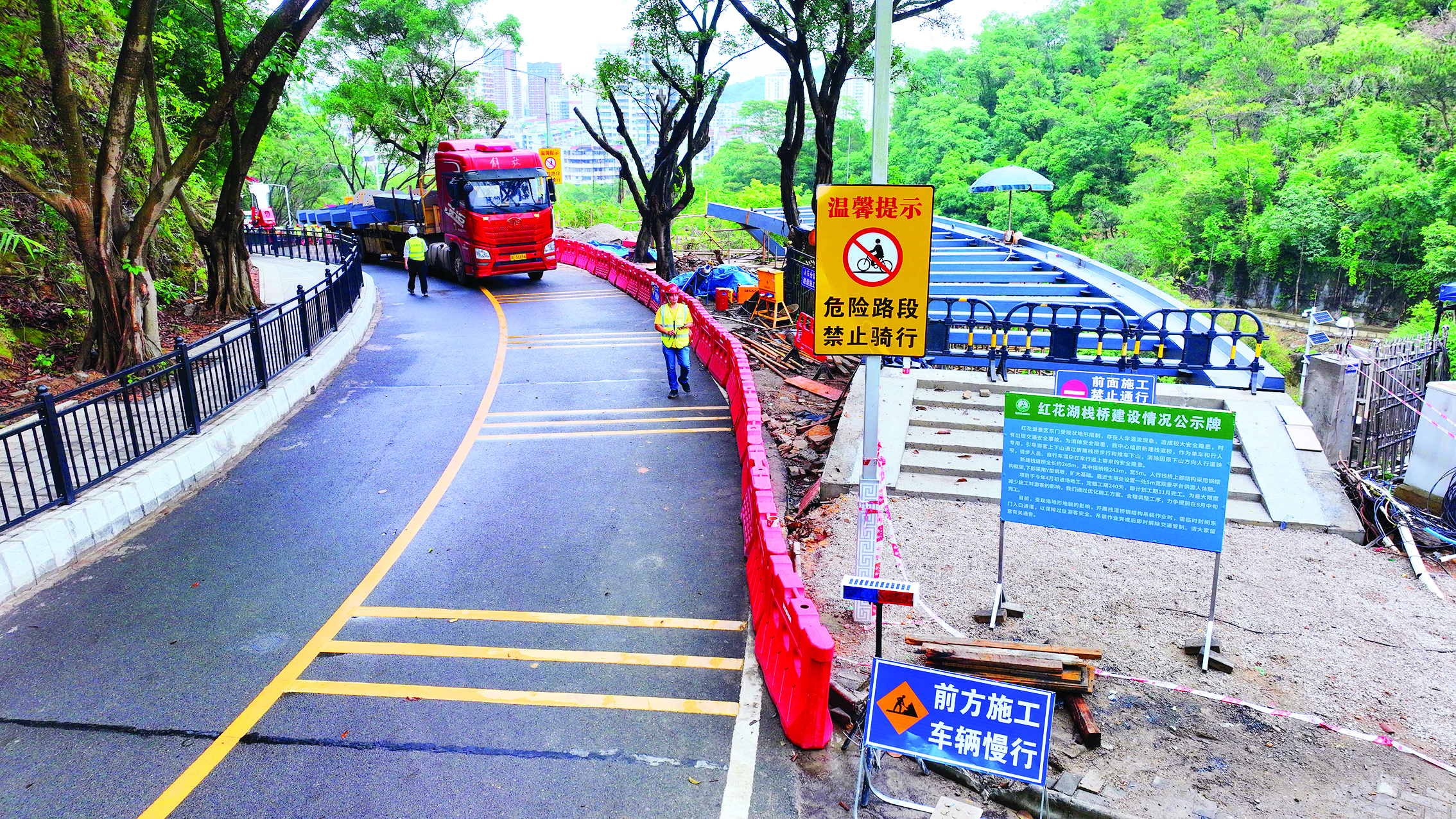 “建成后,市民、游客可以通過(guò)兩側(cè)的人行道和棧橋步行或推車上下山,中間的機(jī)動(dòng)車道可專供機(jī)動(dòng)車行駛,實(shí)現(xiàn)人車分流,解決多年來(lái)紅花湖景區(qū)東入口機(jī)非混行、人車混行的交通隱患!绷_志勇說(shuō)。