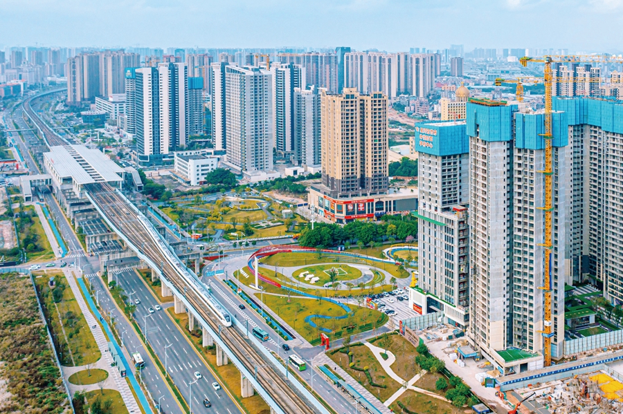 莞惠城軌的列車不時在側(cè)經(jīng)過。