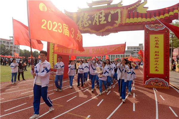 倒計時100天的號角已經(jīng)吹響,高考“接力棒”傳到2023屆師生手中,榮譽和未來需要一代又一代的接力。“惠州市第一中學(xué)2023屆高考必勝”的旗幟鮮艷奪目,李海媚鄭重地將旗幟交給高三年級主任鄔艷莉!耙恢斜貏佟⒈貏、必勝!”高昂的吶喊聲激蕩著校園。吶喊聲未落,高三同學(xué)們就回報以熱烈的掌聲、歡呼聲,將現(xiàn)場的氣氛推向最高潮,在場師生熱血涌動。