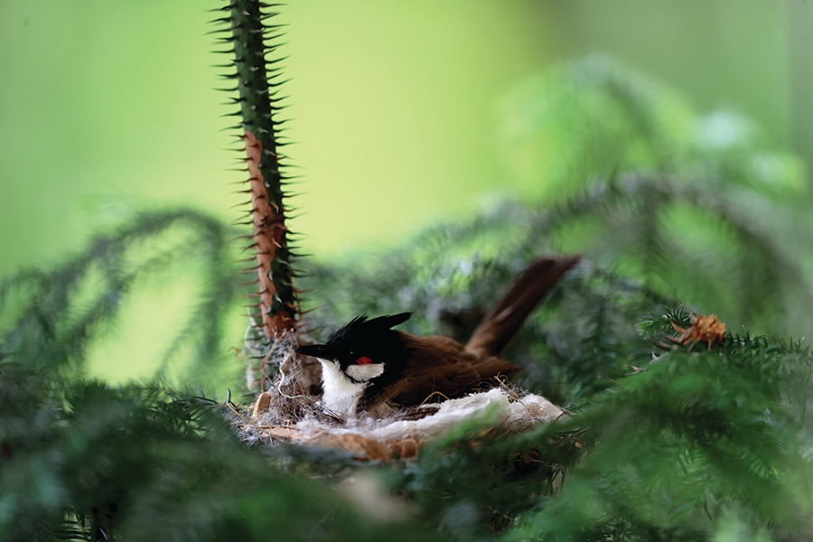 紅耳鵯在孵化鳥蛋,期待新生命的誕生。