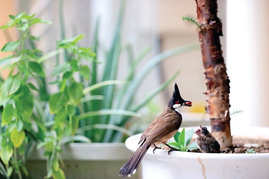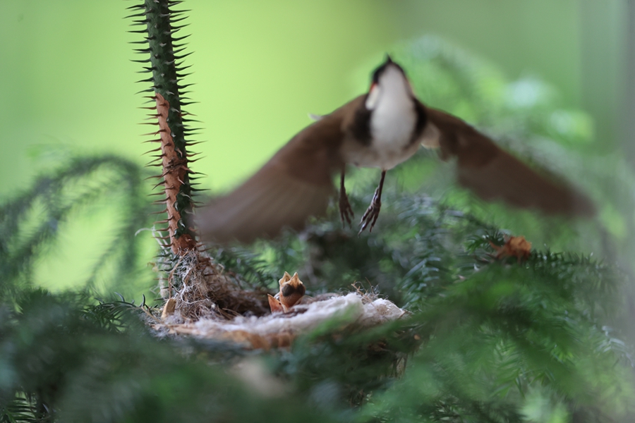 惠報(bào)記者跟蹤拍攝近一個(gè)月,記錄了紅耳鵯筑巢民宅育兒的日常