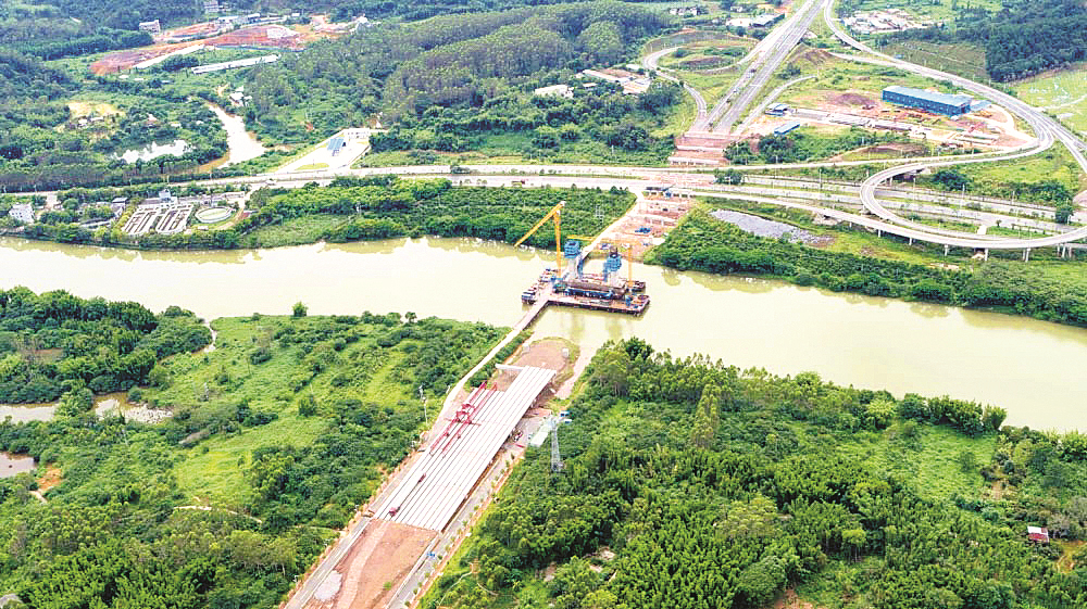 龍門大橋已基本完成橋梁下部結(jié)構(gòu);葜萑請笥浾唿S宇翔 通訊員龍融心 攝