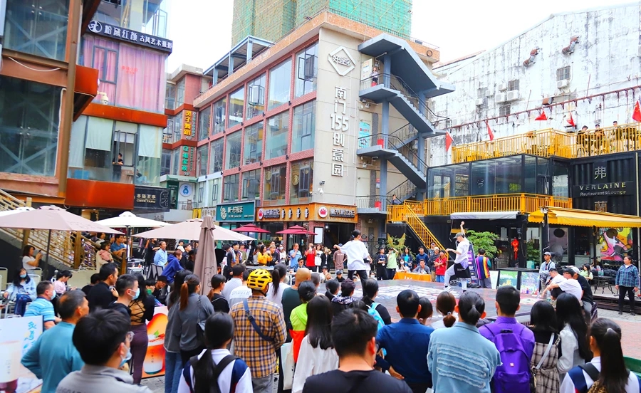 夜晚的南門155創(chuàng)意園更加熱鬧。