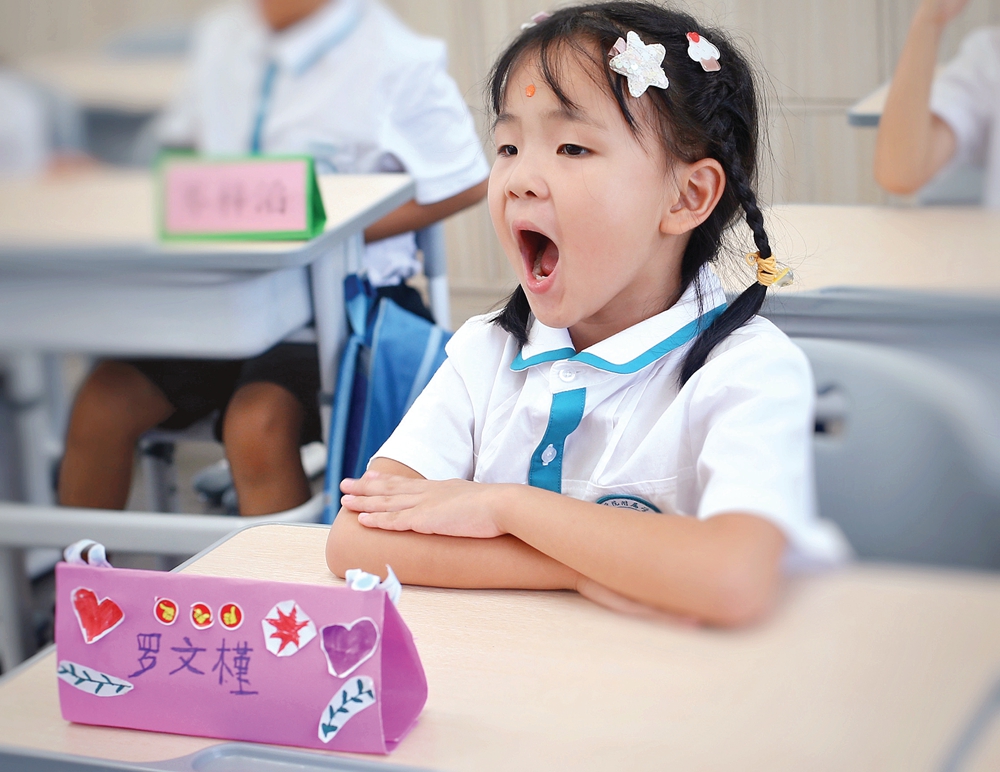 在博羅縣羅陽第四小學(xué),一大早,教室里就書聲瑯瑯。度過一個暑假的孩子們回到學(xué)校,表現(xiàn)各異,有的孩子還沒適應(yīng)開學(xué)的作息時間,有的還帶著來不及吃的早餐走進(jìn)教室,一些低年級的孩子則哭鬧著不讓父母離開,也有的孩子與朋友們重逢,玩得不亦樂乎。