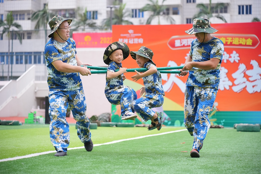 這場別具一格的國防主題親子運(yùn)動(dòng)會(huì),給參與的家庭留下了美好的回憶,為孩子們的童年添上了精彩一筆!巴媪艘幌挛纾媸请y得的親子時(shí)間。我沒想到孩子已經(jīng)力氣這么大了!眲⑾壬膬鹤釉诨葜菀恢兄賽鹦^(qū)三年級就讀,他認(rèn)為運(yùn)動(dòng)會(huì)的舉辦,有效加強(qiáng)了親子互動(dòng),增進(jìn)了親子感情,更讓熱愛祖國、保衛(wèi)家園的小小愿望在孩子們心中扎根,他們將向著更高、更遠(yuǎn)的目標(biāo)邁進(jìn)。