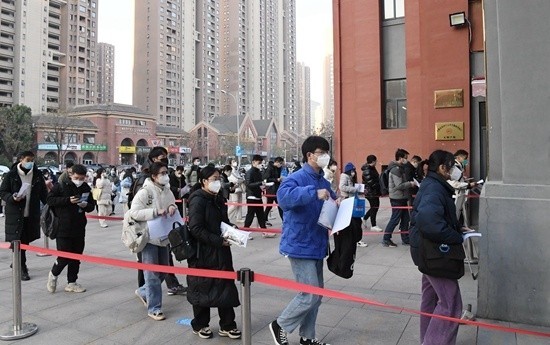 1月8日,安徽合肥,中央機關及其直屬機構2023年度考試錄用公務員公共科目筆試舉行,合肥一考點考生準備入場參加公共科目筆試。新華社發(fā) 陳三虎/攝