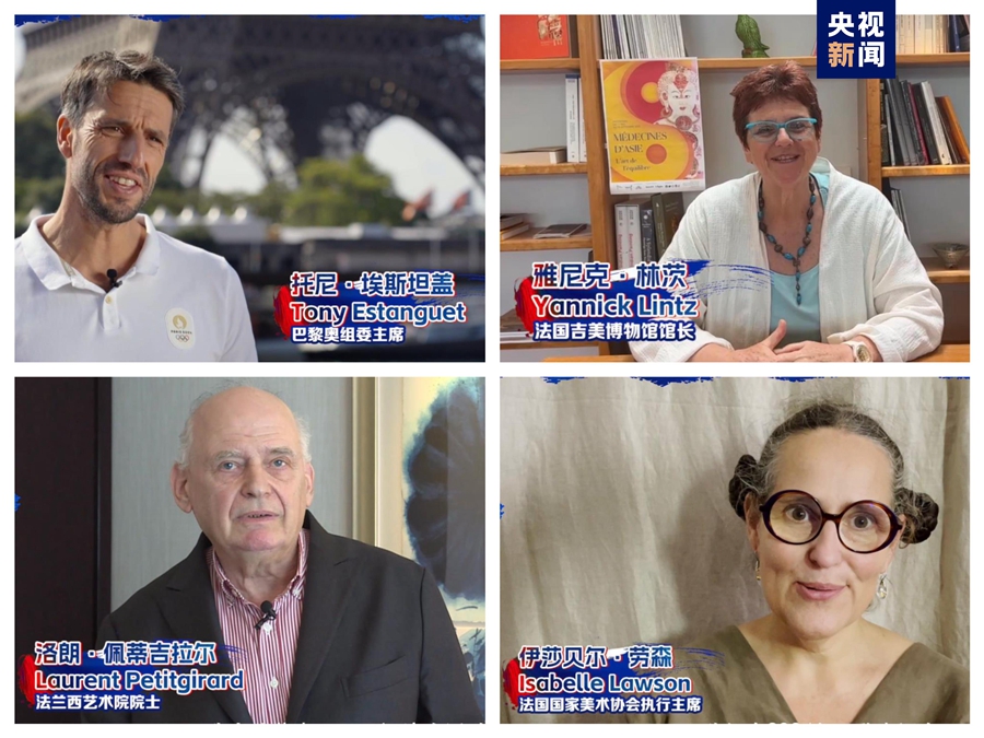 巴黎奧組委主席托尼·埃斯坦蓋視頻訪談中,向中國體育健兒、觀眾和藝術家們發(fā)出美好祝愿與邀請。法國吉美博物館館長雅尼克·林茨、法蘭西藝術院院士洛朗·佩蒂吉拉爾、法國國家美術協(xié)會執(zhí)行主席伊莎貝爾·勞森等法國藝術界代表向中國藝術家發(fā)出誠摯邀請。