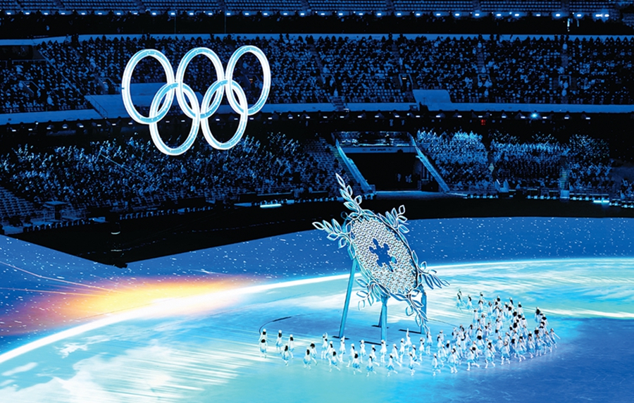 雷曼光電生產(chǎn)的“冰雪五環(huán)”亮相2022年北京冬奧會(huì)。