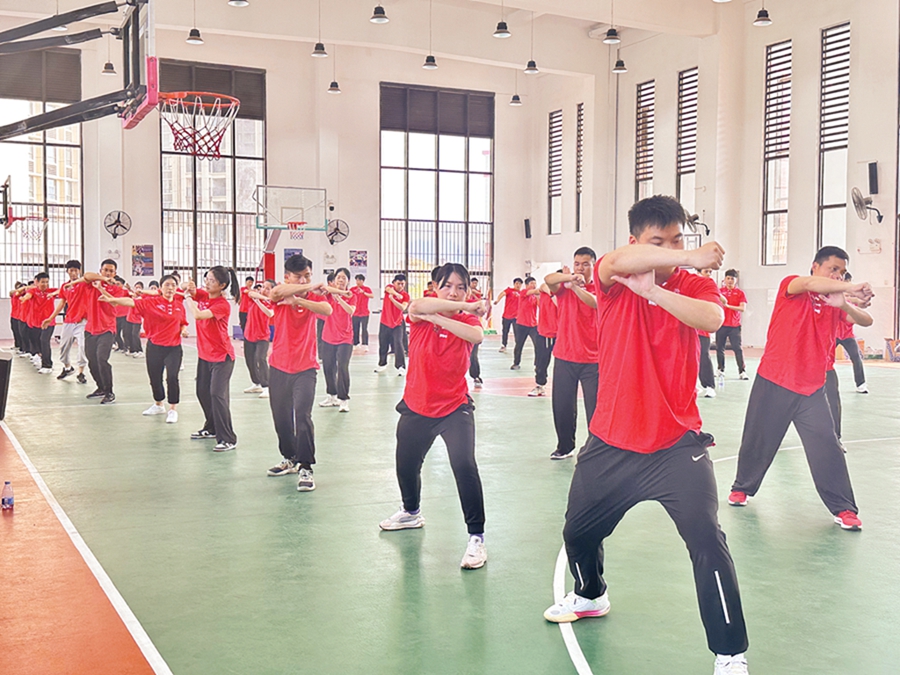 惠州日報訊 (記者邱舒婷 魏怡蘭 通訊員楊芳 梁茂玲)“手臂提高點,跨度也不要太大!痹谥袊まr(nóng)紅軍惠州廖承志紅軍小學(xué)體育館內(nèi),100多名教師整齊列隊,莫家拳第九代傳人莫玉林不時手把手地校正教師的姿勢和動作,這是仲愷高新區(qū)教師學(xué)習(xí)莫家拳武術(shù)操的現(xiàn)場。