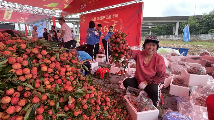 事實(shí)上,早在6月15日,瀝林鎮(zhèn)荔枝交易市場(chǎng)就已開市。當(dāng)天不到2小時(shí),5000多斤荔枝銷售一空。