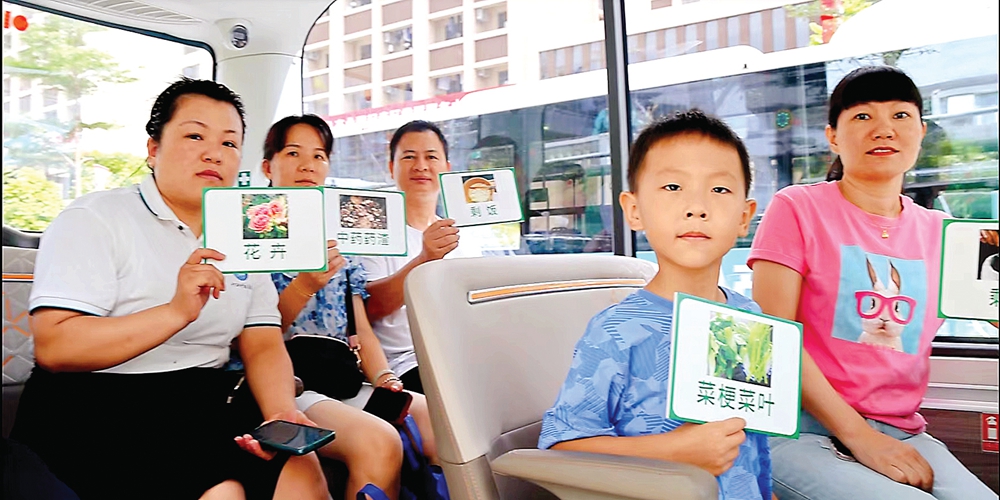 群眾帶著生活常見(jiàn)垃圾手牌乘坐對(duì)應(yīng)的垃圾分類無(wú)人駕駛巴士。 惠州日?qǐng)?bào)記者邱舒婷 魏怡蘭 通訊員曾嘉怡 攝