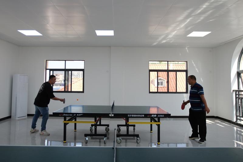 文體樓的建成也改變了村民溫碧冬的生活習(xí)慣!拔乙郧安粣圻\動,因為村里沒有運動場所,要跑去別的村,又覺得有些麻煩。”溫碧冬說,現(xiàn)在村里一下“冒”出了很多乒乓球高手,只要有空,他都會到文體樓玩上幾局,日子像是多了一個“寄托”,“文體樓讓村里更有生活氣息了!